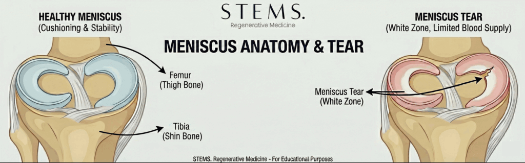 Home » Resources » Knee Pain » Stem Cell Therapy for Meniscus Tears: Can Biologics Replace Arthroscopic Surgery?