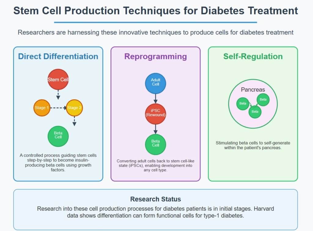 Researchers are harnessing the following techniques to produce cells for diabetes treatment.